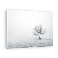 Schilderen op glas - Een eenzame boom tegen de mist in een monochrome compositie - 70x50cm - Tegen het niets - Moderne wanddecoratie voor woonkamer en slaapkamer ARTTOR