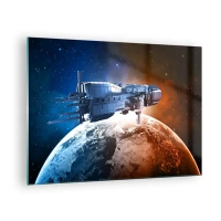 Schilderen op glas - Een ruimteschip dat in sterrenlicht om een planeet draait - 70x50cm - Een zorgvuldige waarnemer - Moderne wanddecoratie voor woonkamer en slaapkamer ARTTOR