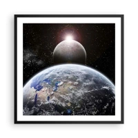 Poster in een zwarte lijst - Kosmisch landschap - zonsopgang - 60x60 cm