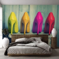 Fotobehang Standard Eco - Loop op de regenboog - Mode, Vrouw, Damesschoenen - 500x350 cm