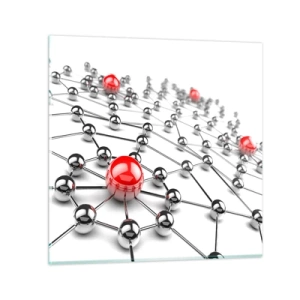 Wandklok - Klok - Moleculaire structuur met rode accenten op een witte achtergrond - 30x30cm - Zilverachtig web - Moderne wanddecoratie voor woonkamer, keuken en slaapkamer ARTTOR