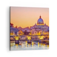 Schilderen op canvas - Zonsondergang boven de Eeuwige Stad - 60x60 cm