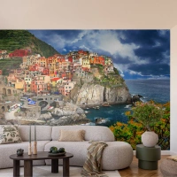 Fotobehang Premium Sand - Een groepje geklampt an de rots - Landschap, Architectuur, Italië - 100x70 cm
