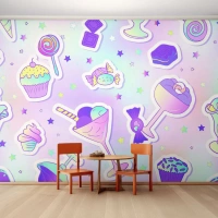 Fotobehang Standard Eco - Kleurrijke snoepjes en desserts in pastelstijl - 100x70cm - Dat het elke dag een verjaardag zou zijn - Moderne wanddecoratie voor woonkamer en slaapkamer ARTTOR