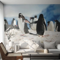 Zelfklevend Fotobehang Deluxe Sticker - Dansen in de sneeuw - pinguïn, Antarctica, Landschap - 300x210 cm