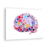 Schilderen op glas - Een kleurrijke illustratie van een brein dat bestaat uit geometrische vormen. - 70x50cm - De meest perfecte machine van de natuur - Moderne wanddecoratie voor woonkamer en slaapkamer ARTTOR