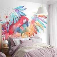 Fotobehang Standard Eco - Een kleurrijke papegaai in een artistieke aquarelstijl - 100x70cm - Gekleurde papegaaien - Moderne wanddecoratie voor woonkamer en slaapkamer ARTTOR