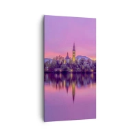 Fotobehang Premium Canvas - Een sprookjesachtig eiland in de schemering - Landschap, Slovenië, Het eiland Bled - 100x70 cm