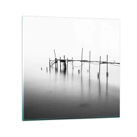 Wandklok - Klok - Een minimalistische pier op kalm water in grijstinten - 30x30cm - Wat als er geen wereld is? - Moderne wanddecoratie voor woonkamer, keuken en slaapkamer ARTTOR