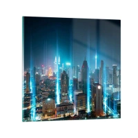 Wandklok - Klok - Nachtstad met verlichte wolkenkrabbers - 30x30cm - Op z'n Berlijns naar de hemel - Moderne wanddecoratie voor woonkamer, keuken en slaapkamer ARTTOR