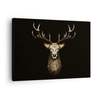 Schilderen op canvas - Geometrisch veelhoekig hert op een zwarte achtergrond - 70x50cm - Kubistische herten - Moderne wanddecoratie voor woonkamer en slaapkamer ARTTOR