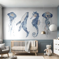 Fotobehang op maat Standard Eco - Zee wonderen - Zeedieren, zeepaardje, Kwallen