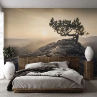 Fotobehang Premium Sand - Het leven wint altijd - Berglandschap, Pijnboom, Bergen - 100x70 cm