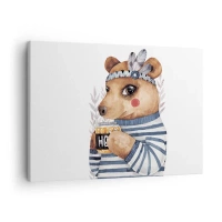 Schilderen op canvas - Een teddybeer in een gestreepte trui met een kopje honing - 70x50cm - Zoete beer - Moderne wanddecoratie voor woonkamer en slaapkamer ARTTOR