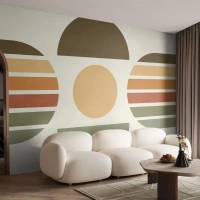 Fotobehang Standard Eco - Geometrische halve cirkels en strepen in aardse tinten - 100x70cm - In aardetinten - Moderne wanddecoratie voor woonkamer en slaapkamer ARTTOR