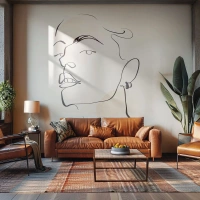 Fotobehang Standard Eco - Een minimalistisch portret van een vrouw in één lijn - 100x70cm - Een trotse blik - Moderne wanddecoratie voor woonkamer en slaapkamer ARTTOR
