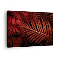 Schilderen op canvas - Close-up van rode tropische bladeren - 70x50cm - De hitte van het leven - Moderne wanddecoratie voor woonkamer en slaapkamer ARTTOR