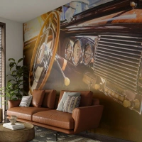 Zelfklevend Fotobehang Deluxe Sticker - Een adem van luxe uit het verleden - Vintage auto, Automobiel, Dashboard - 450x315 cm