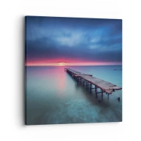 Schilderen op canvas - Een houten pier die bij zonsondergang rechtstreeks naar de zee leidt - 70x50cm - Tussen hemel en aarde - Moderne wanddecoratie voor woonkamer en slaapkamer ARTTOR