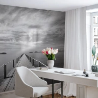 Fotobehang op maat Standard Eco - Of misschien een reis... - Landschap, Zee, Houten brug