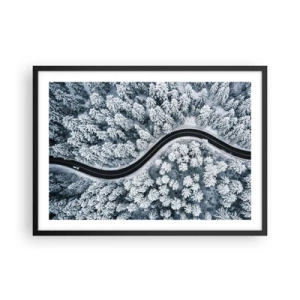 Poster in een zwarte lijst - Door het winterbos - 70x50 cm