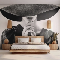 Fotobehang op maat Premium Canvas - Verborgen schoonheid - Vrouw In Een Hoed, Dameshanden, Mode
