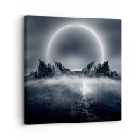 Wandklok - Klok - Futuristisch landschap met eclips en scherpe rotsen - 30x30cm - Einde van het verhaal - Moderne wanddecoratie voor woonkamer, keuken en slaapkamer ARTTOR