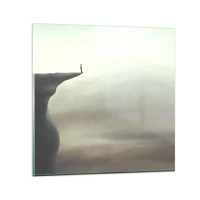 Wandklok - Klok - Een figuur staat op de rand van een klif in een minimalistisch landschap - 30x30cm - Omhoog, natuurlijk! - Moderne wanddecoratie voor woonkamer, keuken en slaapkamer ARTTOR