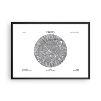 Schilderen op glas - Een cirkelvormige kaart van Parijs in zwart-witillustratie - 70x50cm - Anatomie van Parijs - Moderne wanddecoratie voor woonkamer en slaapkamer ARTTOR