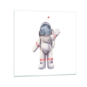 Wandklok - Klok - Illustratie van een kosmonaut met zijn hand omhoog op een witte achtergrond - 30x30cm - Tot ziens! - Moderne wanddecoratie voor woonkamer, keuken en slaapkamer ARTTOR