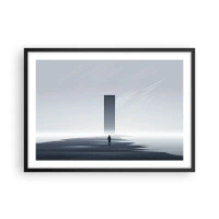 Schilderen op glas - Een minimalistisch landschap met een figuur en een monoliet in de verte. - 70x50cm - Kans of bedreiging? - Moderne wanddecoratie voor woonkamer en slaapkamer ARTTOR