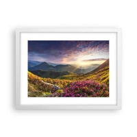 Poster in een witte lijst - Frisheid in de ochtend in de bergen - 40x30 cm