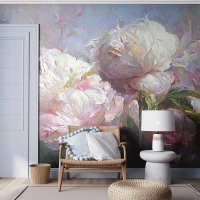Fotobehang Standard Eco - Pastelkleurige pioenrozen in een schilderachtige impressionistische stijl - 100x70cm - Een boeket vol leven - Moderne wanddecoratie voor woonkamer en slaapkamer ARTTOR