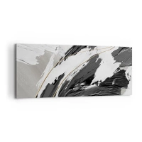 Schilderen op canvas - Zwart-witte verfstreken met een subtiel goudaccent - 70x50cm - Abstractie op grote schaal - Moderne wanddecoratie voor woonkamer en slaapkamer ARTTOR