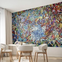 Fotobehang Standard Eco - Kleurrijke abstractie met dynamische patronen - 100x70cm - Glas in lood druppel - Moderne wanddecoratie voor woonkamer en slaapkamer ARTTOR