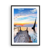 Poster in een zwarte lijst - Pier aan het meer bij zonsondergang - 50x70cm - Goedeavond - Moderne wanddecoratie voor woonkamer en slaapkamer ARTTOR