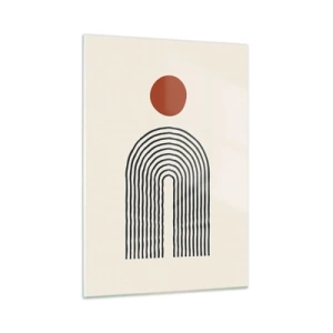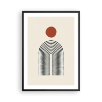 Poster in een zwarte lijst - Geometrische abstractie met een lineaire boog en een rode cirkel. - 50x70cm - Magnetisme van vormen en kleuren - Moderne wanddecoratie voor woonkamer en slaapkamer ARTTOR