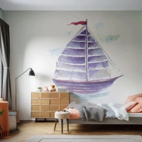 Fotobehang Standard Eco - Een paars-witte zeilboot op een kalme zee - 100x70cm - Volle zeilen en rustig water - Moderne wanddecoratie voor woonkamer en slaapkamer ARTTOR