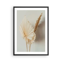Poster in een zwarte lijst - Gedroogde palmbladeren in een minimalistische opstelling op een lichte achtergrond - 50x70cm - Wanneer je verlichting nodig hebt - Moderne wanddecoratie voor woonkamer en slaapkamer ARTTOR