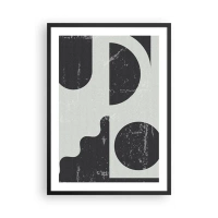 Poster in een zwarte lijst - Abstracte geometrische compositie in zwart en grijs - 50x70cm - Compositie boven en onder - Moderne wanddecoratie voor woonkamer en slaapkamer ARTTOR