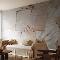 Fotobehang Standard Eco - Een hand die een boek vasthoudt in een witte verftextuur - 100x70cm - In een andere wereld - Moderne wanddecoratie voor woonkamer en slaapkamer ARTTOR