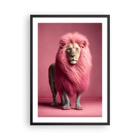 Poster in een zwarte lijst - Een leeuw met roze manen op een roze achtergrond - 50x70cm - En je bent niet meer bang - Moderne wanddecoratie voor woonkamer en slaapkamer ARTTOR