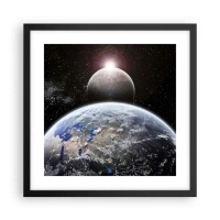 Poster in een zwarte lijst - Kosmisch landschap - zonsopgang - 40x40 cm