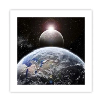 Poster in een witte lijst - Kosmisch landschap - zonsopgang - 40x40 cm
