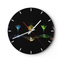 Wandklok - Klok - Kleurrijke drankjes in glazen op een zwarte achtergrond - 30x30cm - Kleuren van vreugde in kristalglas - Moderne wanddecoratie voor woonkamer, keuken en slaapkamer ARTTOR