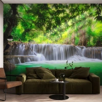 Fotobehang Standard Eco - Een waterval in het groen - Landschap, Waterval, Nationaal Park - 500x350 cm