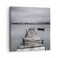 Wandklok - Klok - Een houten steiger op een kalm meer met een boot op de achtergrond - 30x30cm - Je kunt morgen gaan - Moderne wanddecoratie voor woonkamer, keuken en slaapkamer ARTTOR