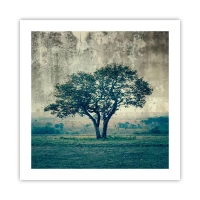 Poster - Een appelboom op een blauw veld? - 50x50 cm