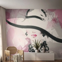 Fotobehang Standard Eco - Portret van een dame in zwart en roze - Vrouw, Het gezicht van de vrouw, Abstractie - 300x210 cm