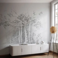 Fotobehang Standard Eco - Potloodschets van berkenbomen in het bos - 100x70cm - Het licht van het berkenbos - Moderne wanddecoratie voor woonkamer en slaapkamer ARTTOR